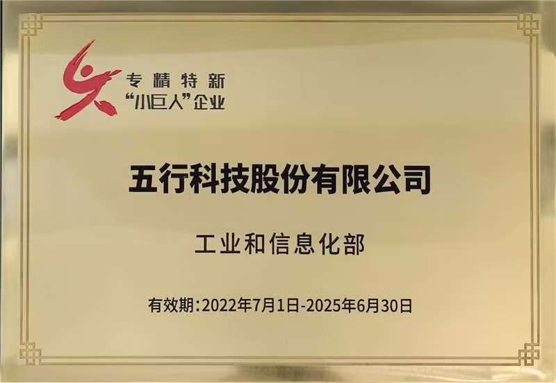 五行科技通過不斷的科技創(chuàng)新,在細分領域不斷做精、做強,經(jīng)營業(yè)績連續(xù)多年保持高速增長,是工業(yè)和信息化部認定的專精特新“小巨人”企業(yè)。