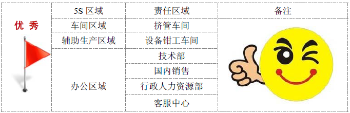 根據(jù)5S 管理推進(jìn)計(jì)劃,復(fù)合軟管事業(yè)部5S 執(zhí)行小組在5 月18 日、19 日,組織對(duì)各區(qū)域5S 管理執(zhí)行情況進(jìn)行檢查、評(píng)比。6 月份起5S 月度大檢查將實(shí)施臨時(shí)突擊檢查,各檢查小組須認(rèn)真對(duì)待,動(dòng)真格,嚴(yán)格按照5S 執(zhí)行獎(jiǎng)懲制度予以考核獎(jiǎng)懲。