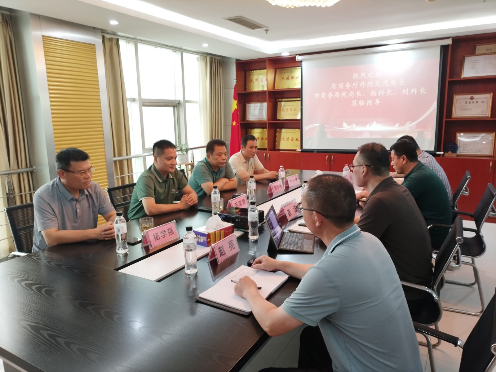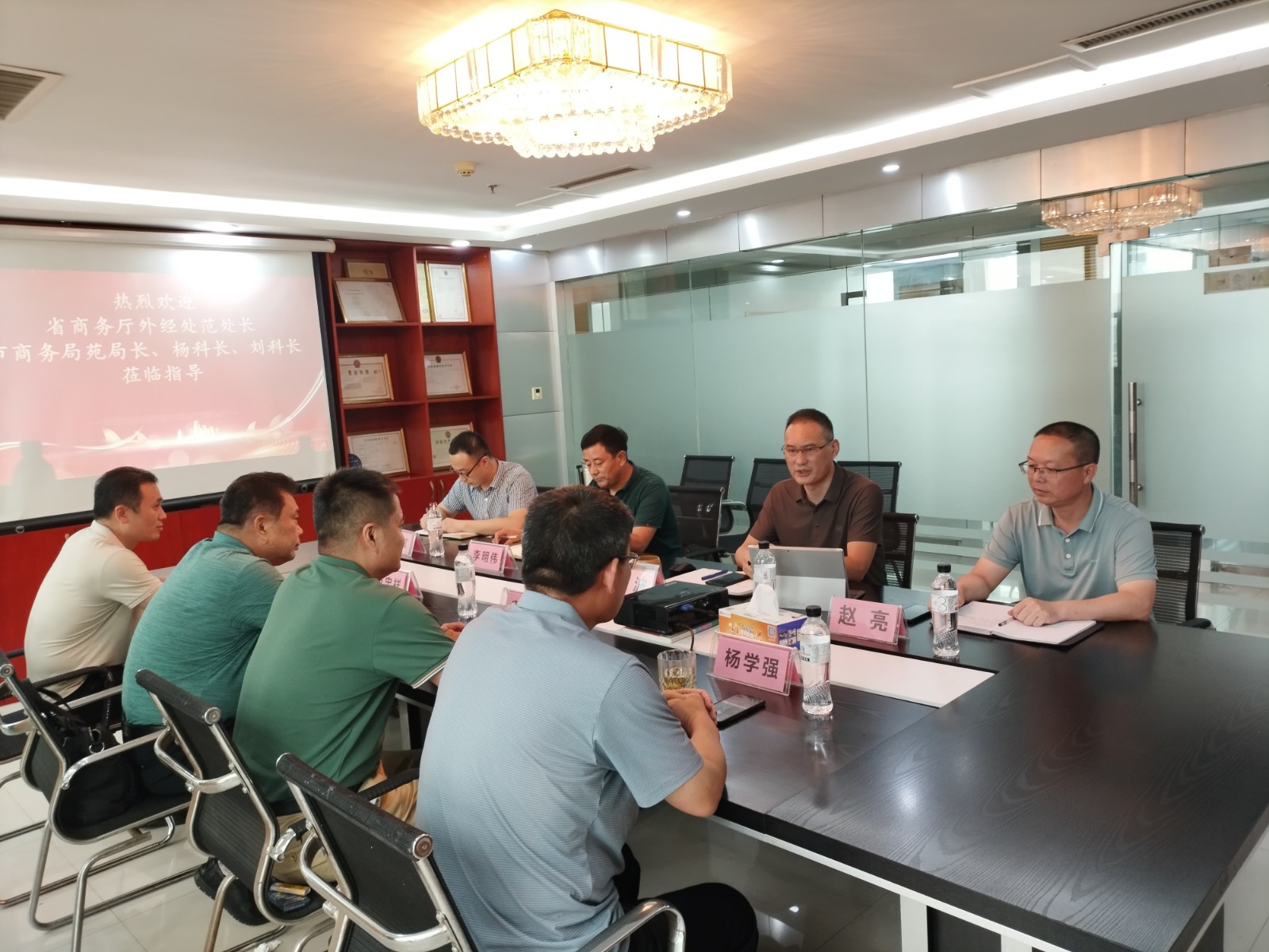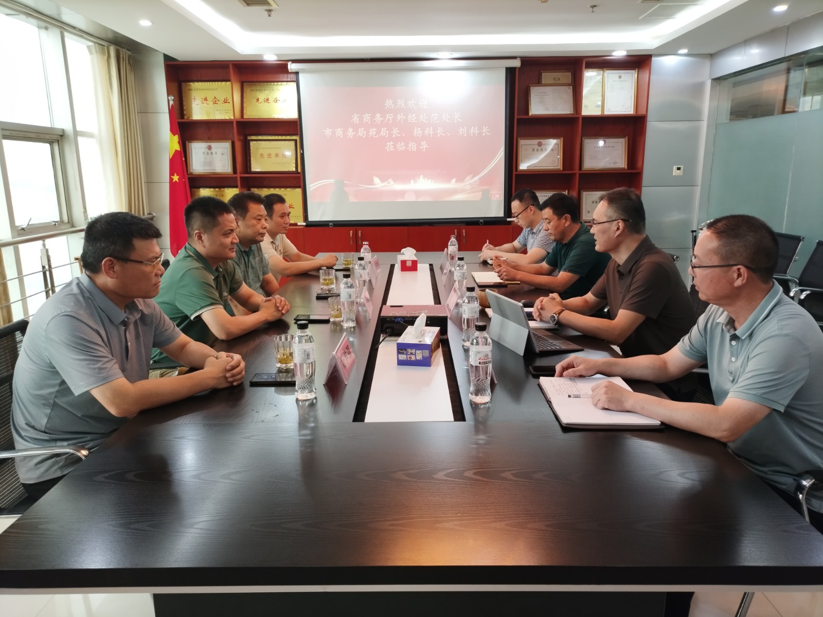 山東省商務(wù)廳外經(jīng)處范副處長(zhǎng)、臨沂市商務(wù)局苑副局長(zhǎng)一行來訪!